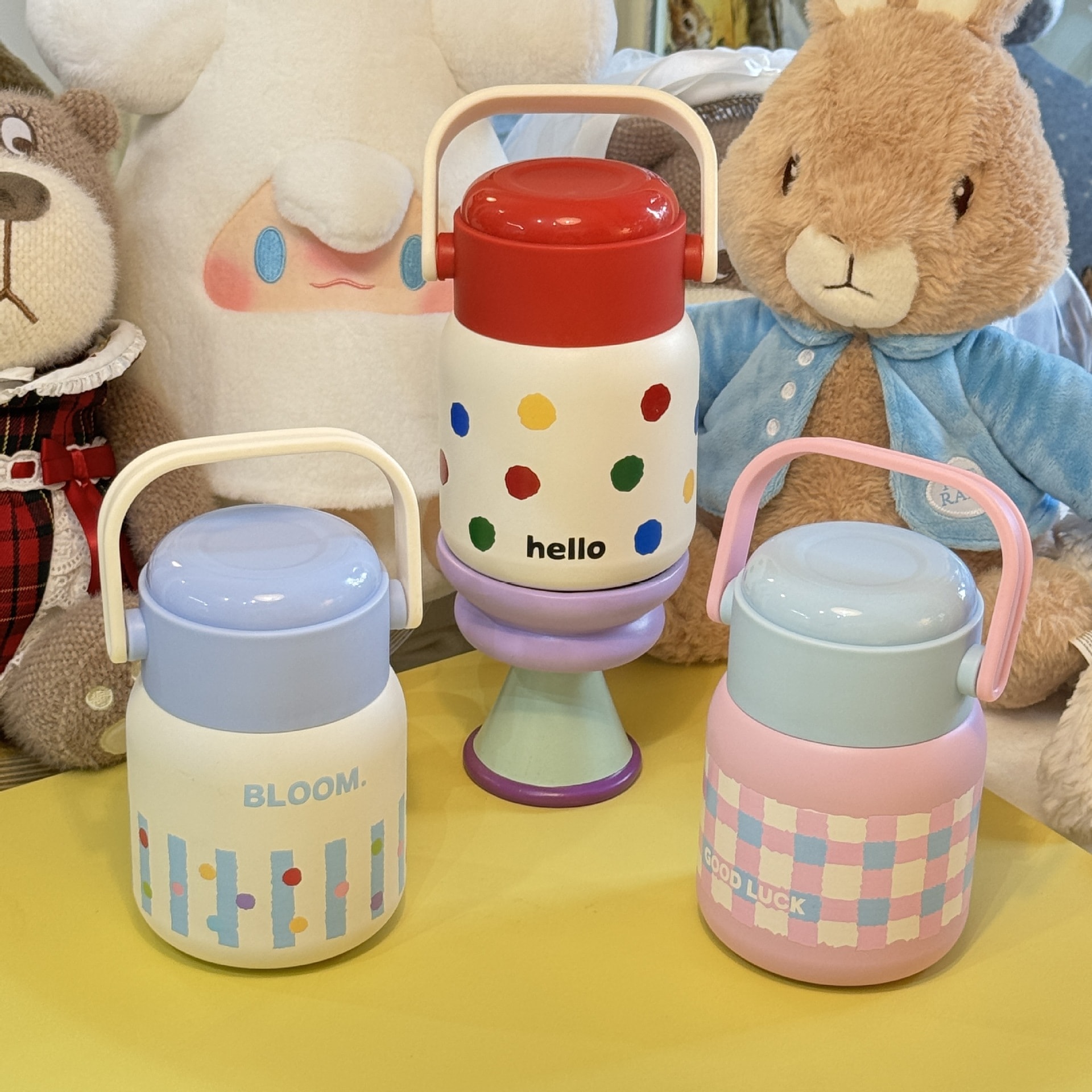 かわいい持ち手大容量プリントカップステンレス保温カップ高颜値大腹カップ タンブラー