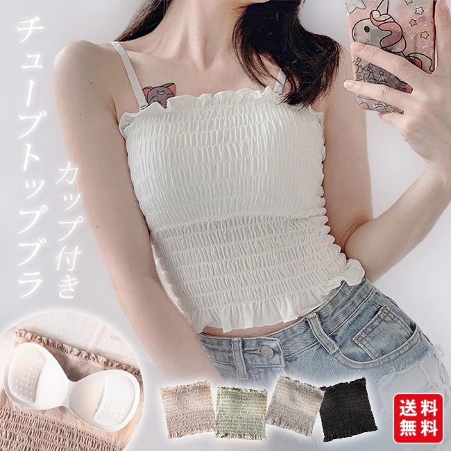 チューブトップブラ インナー 2way キャミソール ストレッチ カップ付き 取り外し可能 ストラップ 着脱可能 春夏 ベアトップ チューブトップ