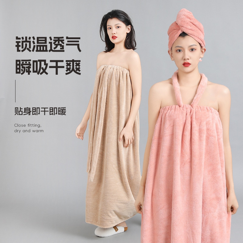 大人用 バススカート ウェアラブル ストラップ バスタオル 首吊り バスローブ コーラルベルベット 吸水性 通気性 ロング バスローブ バスローブ