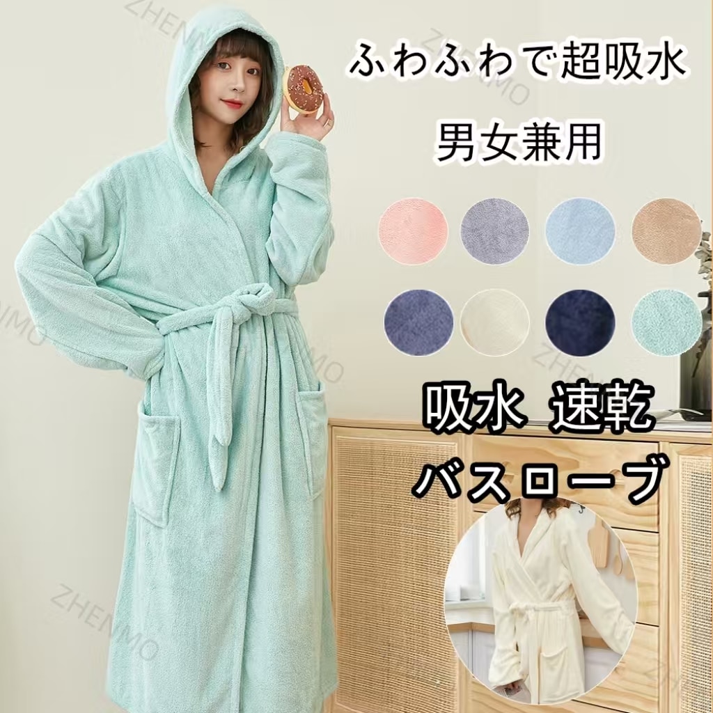 バスローブ マイクロファイバー フード付き ワンオペ 吸水力バツグン ママ レディース メンズ ペア オールシーズン 吸水 速乾 マタニティー 部屋着 ガウン ふわふわ