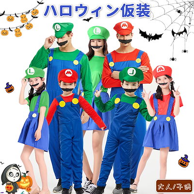 コスプレ衣装 激安 ハロウィン クリスマス ハロウィン 仮装 コスプレ スーパーマリオ風 コスチューム ルイージ風 マリオ風 子供用 大人用 セット ゲームコス 変装