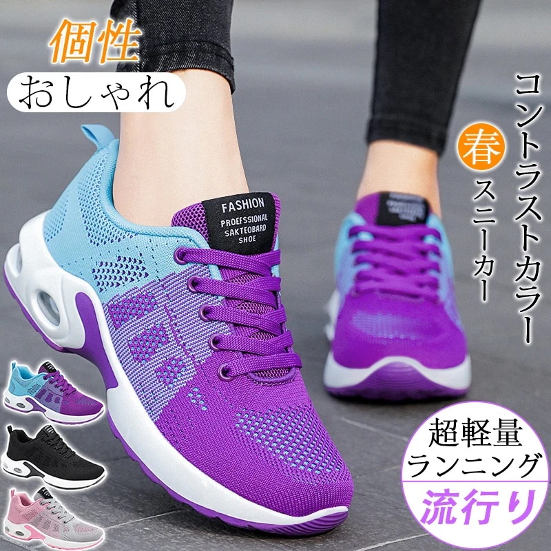 新作 運動 カジュアル スニーカー 弾力 色切り替え グラーデション 柔らかい底 ランニング レディース ランニングシューズ 船型底 紐靴 ウォーキングシューズ エアクッション 通気性耐久性