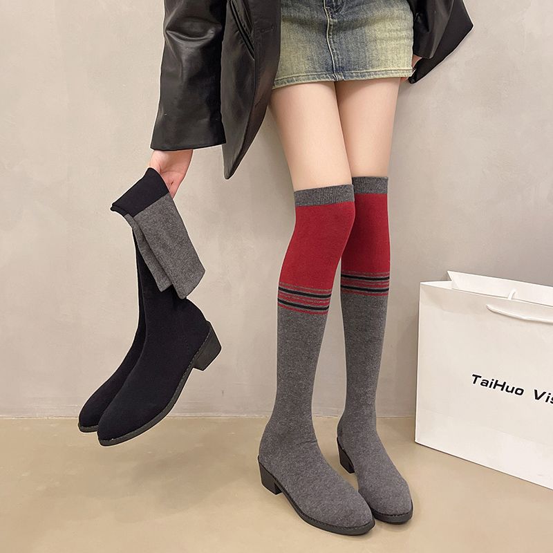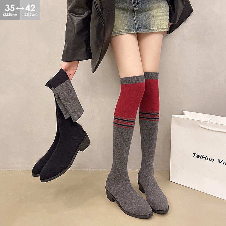 ソックスブーツ ブーツ レディース ニーハイブーツ ストレッチ ブーツ 美脚 チャンキーヒール 膝丈 4.5cmヒール ハイカット 韓国風 シューズ 靴 太ヒール カジュアル おしゃれ