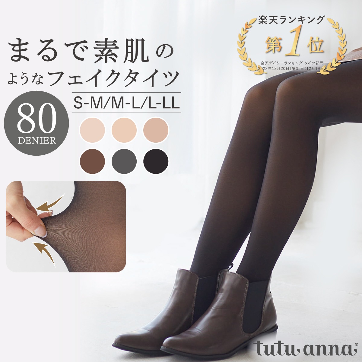 チュチュアンナ レディース フェイクタイツ 黒 ベージュ グレー ブラウン 肌色 透け感 S M L LL フェイクストッキング タイツ 80デニール 防寒 80デニールフェイクタイツ