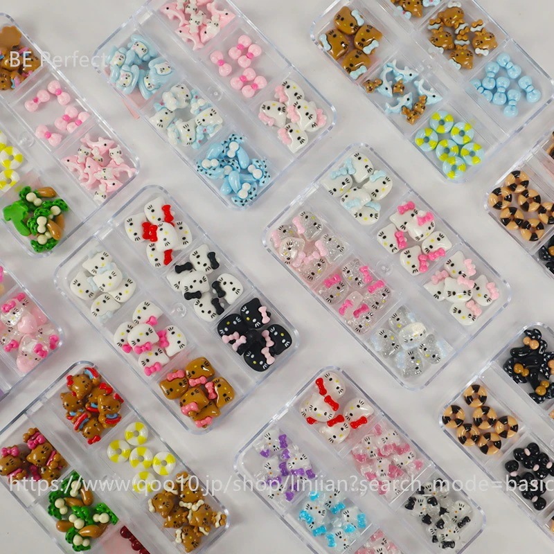 5+1 約30個入 ハローキティ かわいい ジェルネイル ネイルシール ネイルチップ ネイルパーツネイルアート漫画ボックスの装飾 デコパーツ