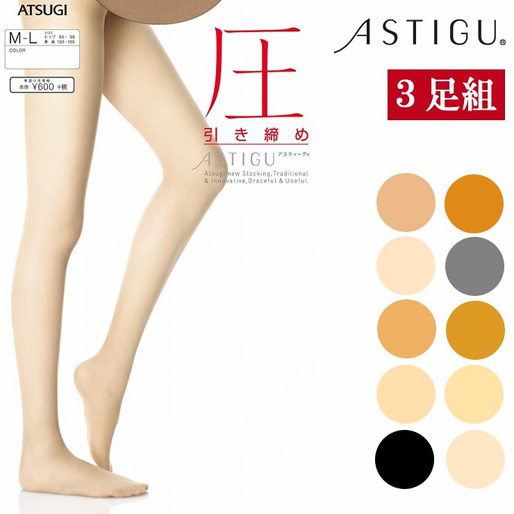 ATSUGI ストッキング ASTIGU NEW 圧3足組 アツギ アスティーグ ストッキング