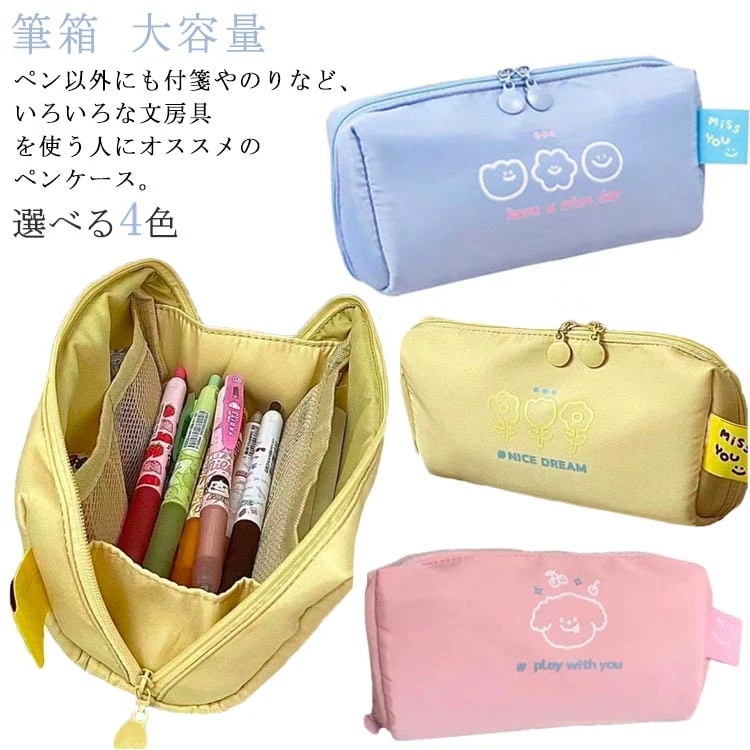 文房具 便利 ポーチ ふで箱 ふでばこ 筆記用具 大容量 コンパクト 大容量 仕切り ペンケース ふで箱 中学生 文具 学校 小学生 かわいい 子供 おしゃれ 便利 イエロー ピンク シン