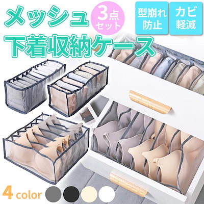 下着収納ボックス3点セット 収納ボックス 衣類収納ケース 引き出し 仕切り メッシュ 折り畳み ランジュリー ブラジャー パンツ 靴下