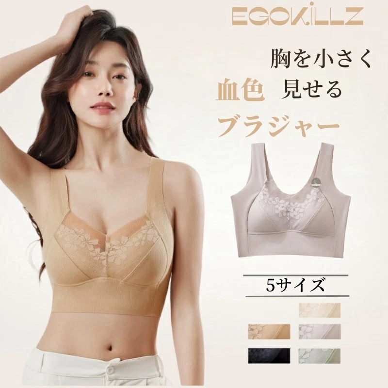 ナイトブラ ブラジャー 胸 小さく 見せる ブラ 大きいサイズ クラッシィワイヤレスブラ プルメリアレース ブラジャー フルカップ 胸を小さく見せるブラ 胸が小さく見えるブラ アンダ