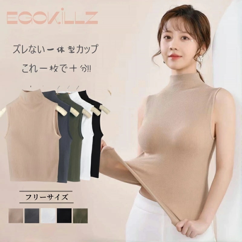 ハイネック ノースリーブ タートルネック タンクトップ 袖なし レディース Tシャツ カットソー インナー メッシュ パワーネット オシャレインナー ブラ付き 韓国風