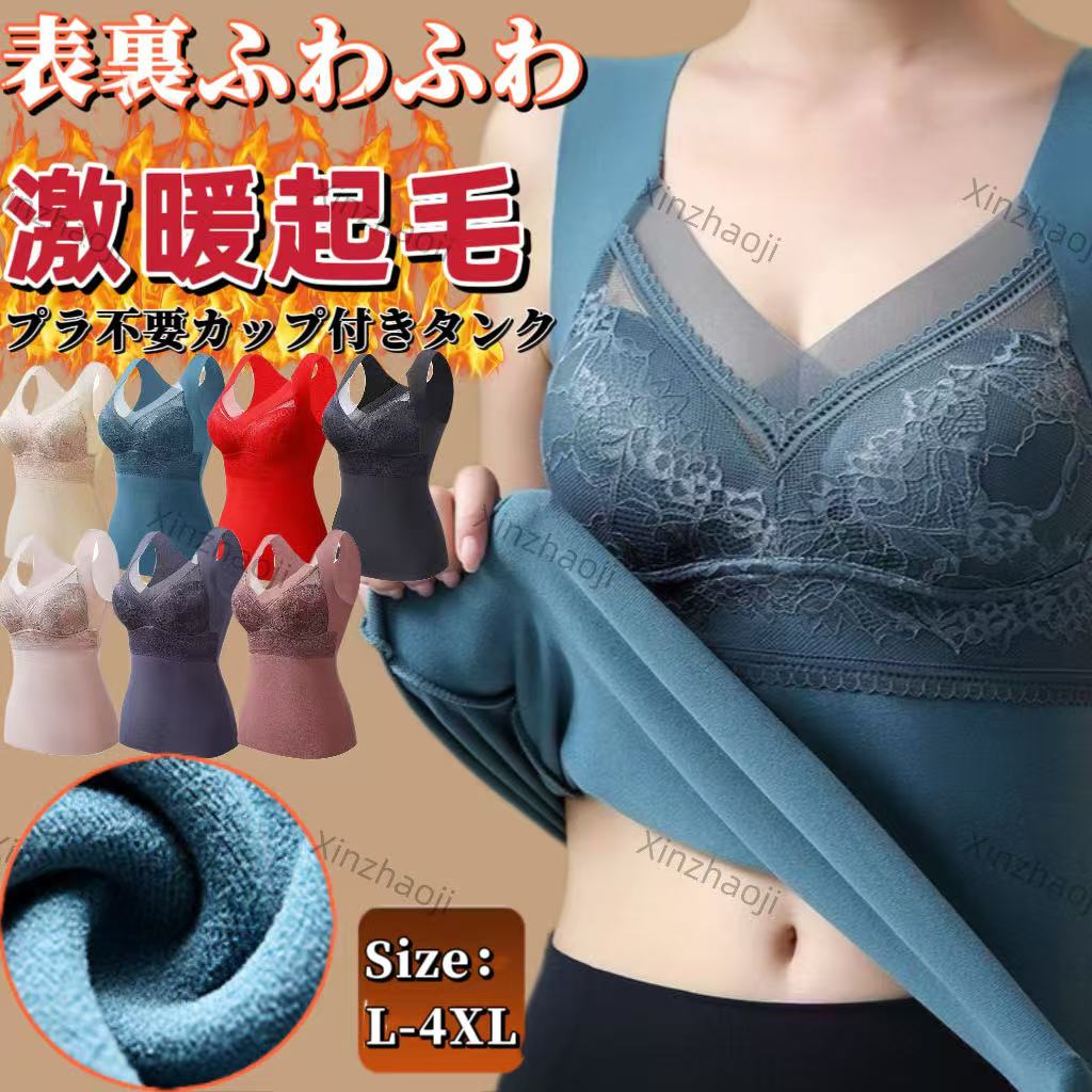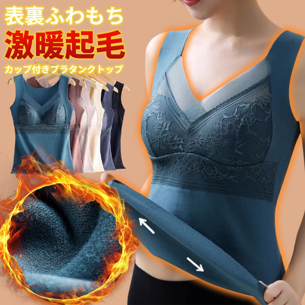 カップ付き 裏起毛 インナータンクトップ 裏起毛タンクトップ インナー レディース トップス 暖か 防寒効果 矯正効果 ヒート レース 花柄 パット付 睡眠 ブラ カップ付きタン
