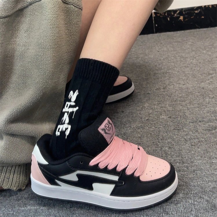 2024カジュアルな白靴アメリカ美ラッド黒ピンクの靴学生通気フラッシュ 電気パン靴 厚底スニーカー