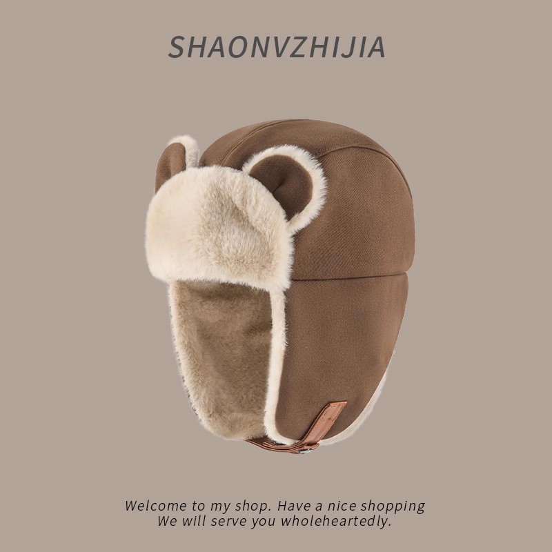 日系 冬 ニット帽 一体型 可愛い 暖かいプルオーバーハットビブ 小顔効果 ハット 保温 韓国ファッション ハット レディース 保温 耳あて イヤーマフラー