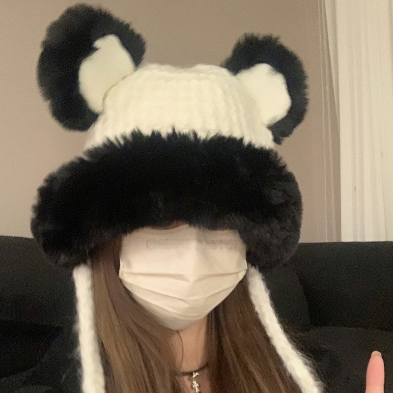 秋 冬 ニット帽 レディースファッション かわいいベアー親子 保温耳保護ウール帽 毛むくじゃら防寒アウトドア帽ニット 帽子 クリスマス 韓国 女優帽 暖かい