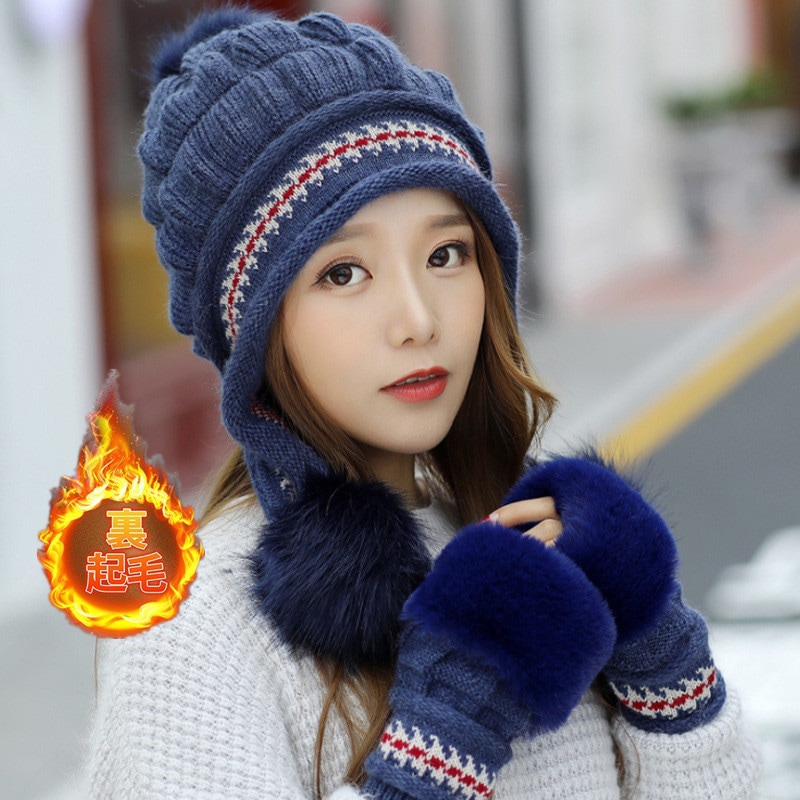 ニット帽 レディース 帽子 ニット 耳あて付き 2点セット 手袋 小顔効果 防寒 キャップ カジュアル 裏起毛 バイク もこもこ 通学 可愛い