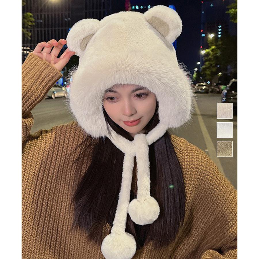 人气 新作 レディースファー帽子 くま耳帽子 暖かい 耳あて イヤーマフラー