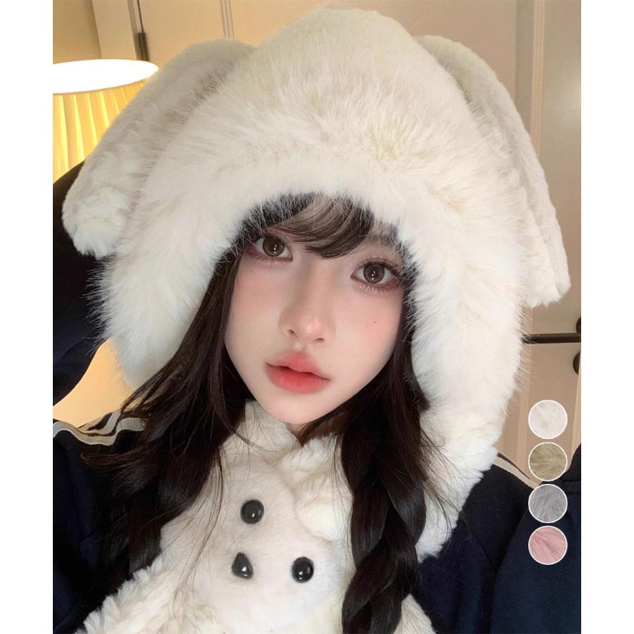人气 新作 マフラー帽子うさぎ耳 ファー帽子ボア帽子 耳あて イヤーマフラー