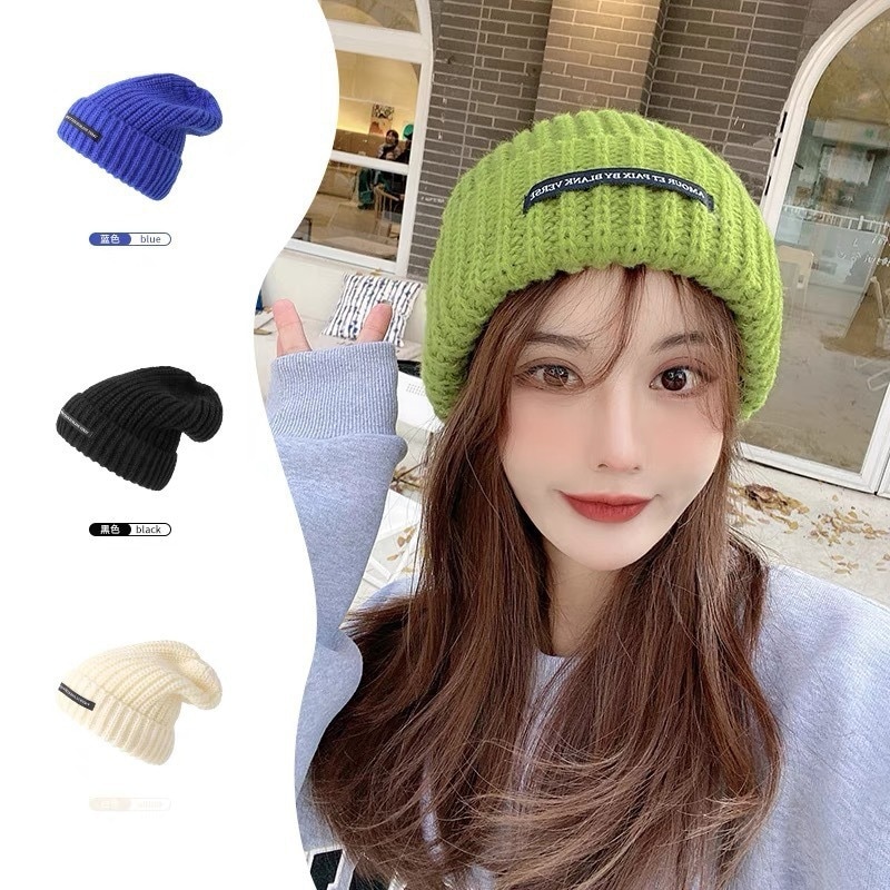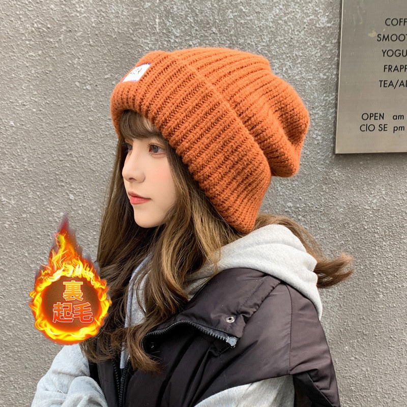 秋冬新作帽子 韓国ファッション モコモコ帽子冬の厚手保温漁師帽冷帽大頭囲ニット毛糸帽子小顔効果 韓国版 ニット帽