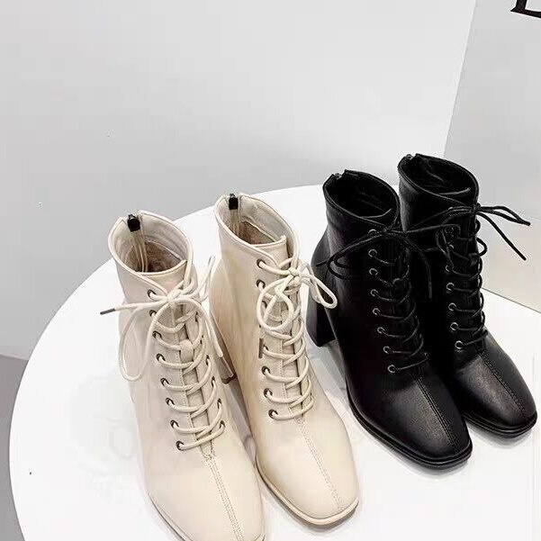 レースアップ ショートブーツ 美脚 編み上げブーツ ショートブーツ ヒール レディース 膝丈 疲れない 歩きやす ブーティー