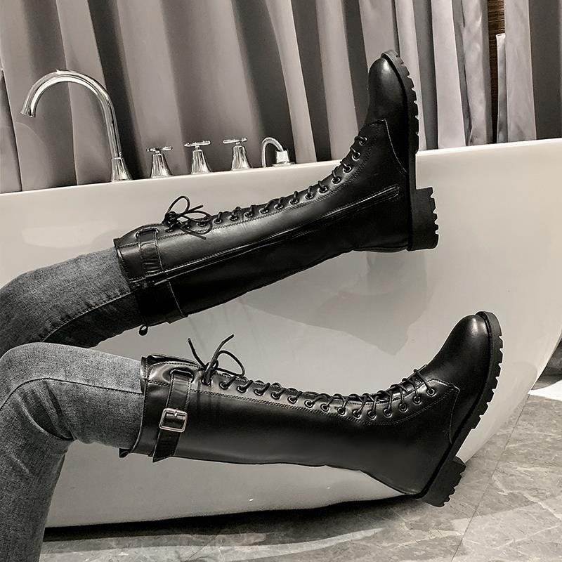 マーディンブーツ ショットブーツ ミドルヒールシューズ3-5cm英伦風 革 レトロ秋冬新作百掛けパッチワーク 気質高級感快適流行りOL通勤 韓国ファッション騎士ブーツ モカシン