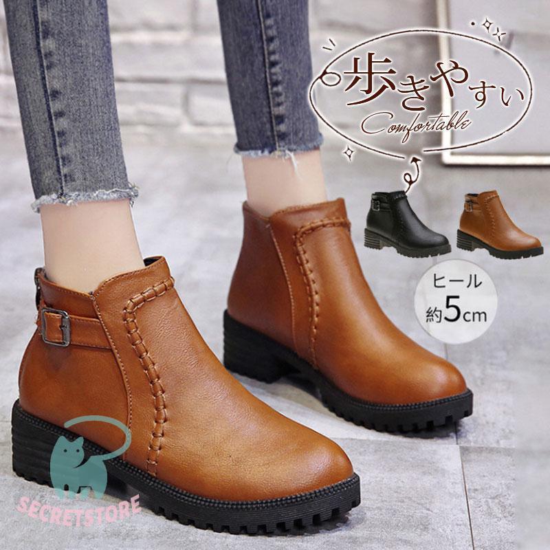 ブーツ レディース ショートブーツ ブーティ 秋冬 ローヒール 合成皮革 歩きやすい おしゃれ 滑りにくい カジュアル 防水 キレイめ ブーティー