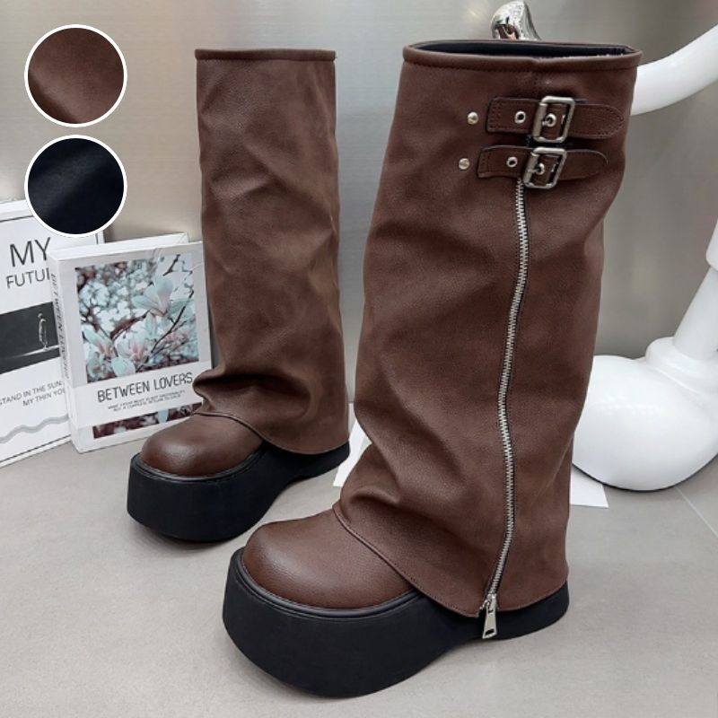 ロングブーツ美脚 着瘦 韓国ファッション ゴシックスタイル 厚底 スリム ハイブーツ ブーツ オートバイライダーブーツ ロングブーツ 厚底ブーツ