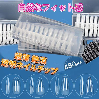 ネイルチップ クリア 480枚 240枚セット 超薄 艶消 透明ネイルチップ スティレット ロング バーチャルジェルチップ 長さだし つけ爪 ネイルちっぷ 自然なフィット感 無痕 ネイル用品 練習