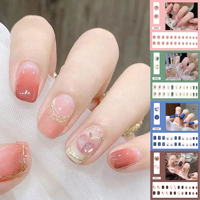 ネイルチップ 24爪付け 新作デザイン多数追加 簡単に貼れる チップ用のり付きネイルシール 韓国ファッション