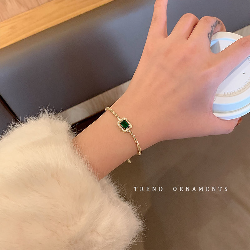 バングル フルダイヤモンドグリーンジルコニアブレスレット女性韓国のハンドジュエリー ブレスレット