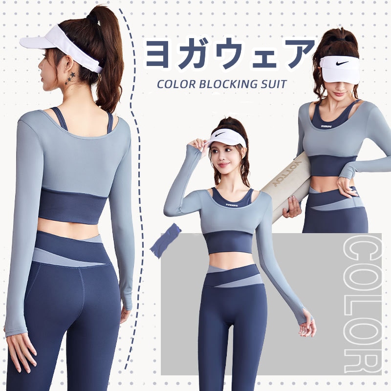 お家ヨガウェア おしゃれヨガウェア ヨガウェアセット胸パッド付きスリムフィットネススポーツ上着ランニング 速乾 長袖 フィットネス ヨガトップス