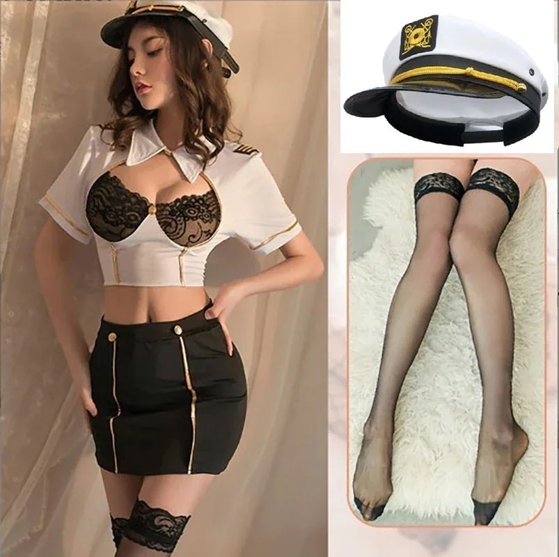 制服 cosplay 韓国ファッション 婦人警官 cos ロールプレイングセクシーなランジェリー制服誘惑セクシーな女性 乗務員スーツ牛乳を漏らす純粋な欲望黒シルク役員スチュワーデス