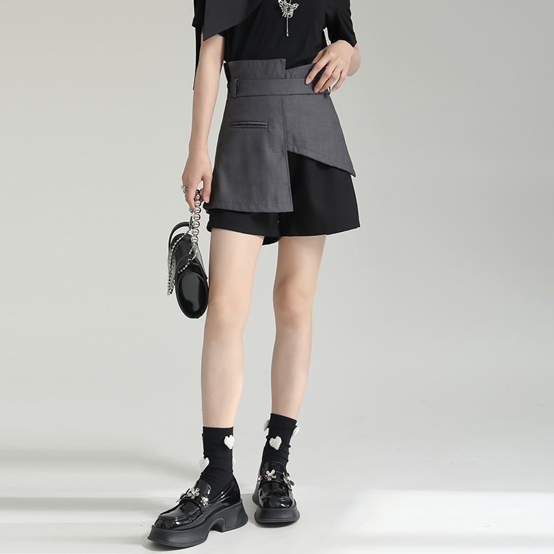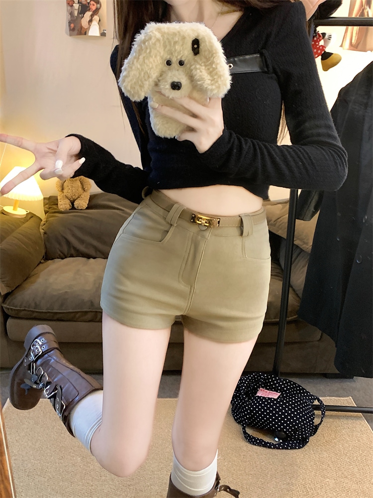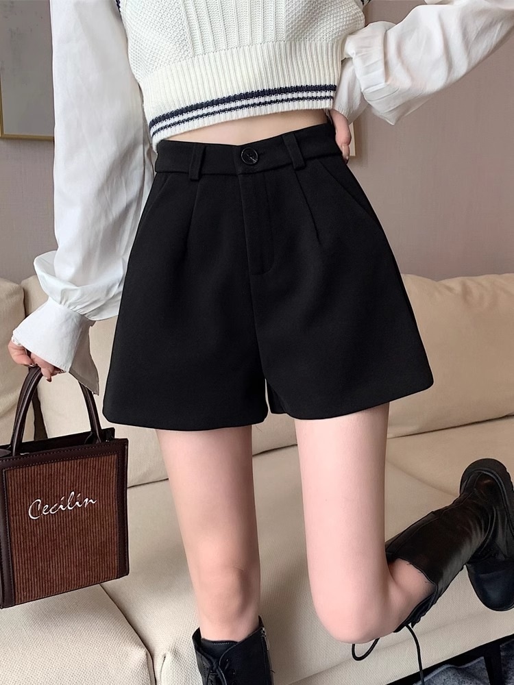 ウールショーツガールズ2023新韓国版ハイウエストシンガーシックウールAラインワイドレッグブーツ ショート ハーフパンツ
