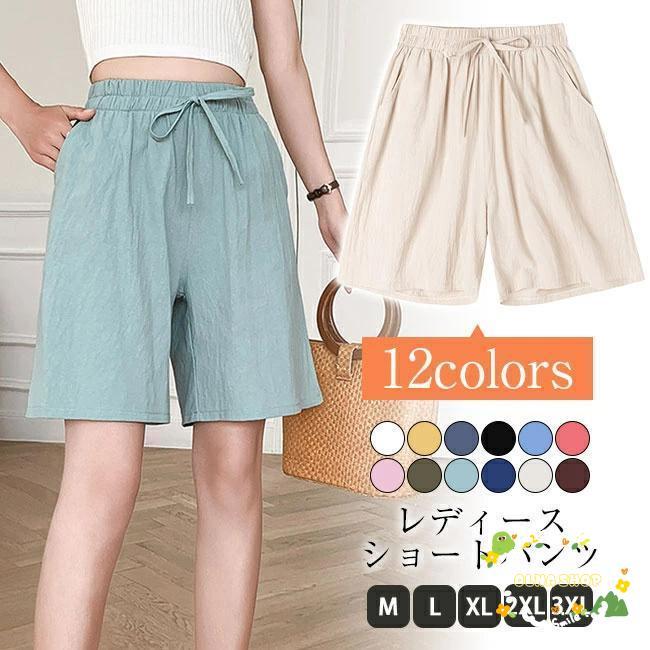 パンツ ハーフパンツ ボトムス レディース 短パン スポーツ ルームウェア 部屋着 ハイウェスト 薄手 涼しい ウェストゴム 夏 ショート ハーフパンツ