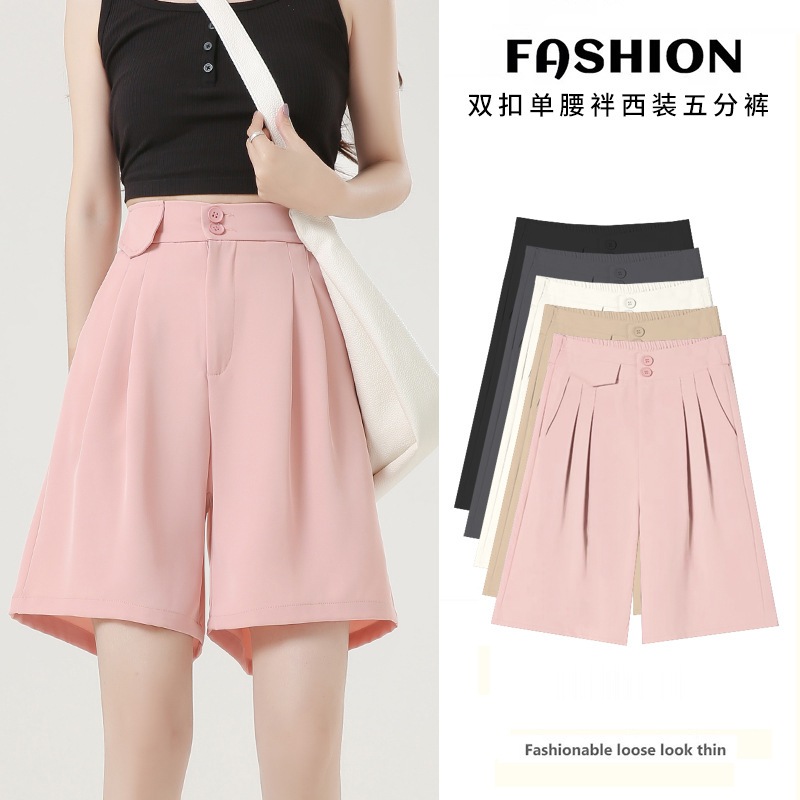 イージーパンツ パンツスーツ 夏の新作 ゆとりがある カジュアル やせて見える ハイウエスト ワイドパンツ A字五分ズボン ショート ハーフパンツ