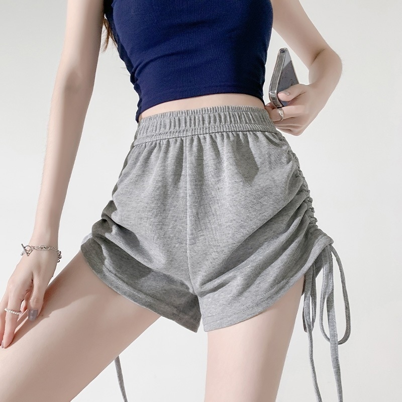 イージーパンツ グレー スポーツパンツ 夏の新作 A字パンツ ハイウエスト やせて見える ワイドパンツ ショート ハーフパンツ
