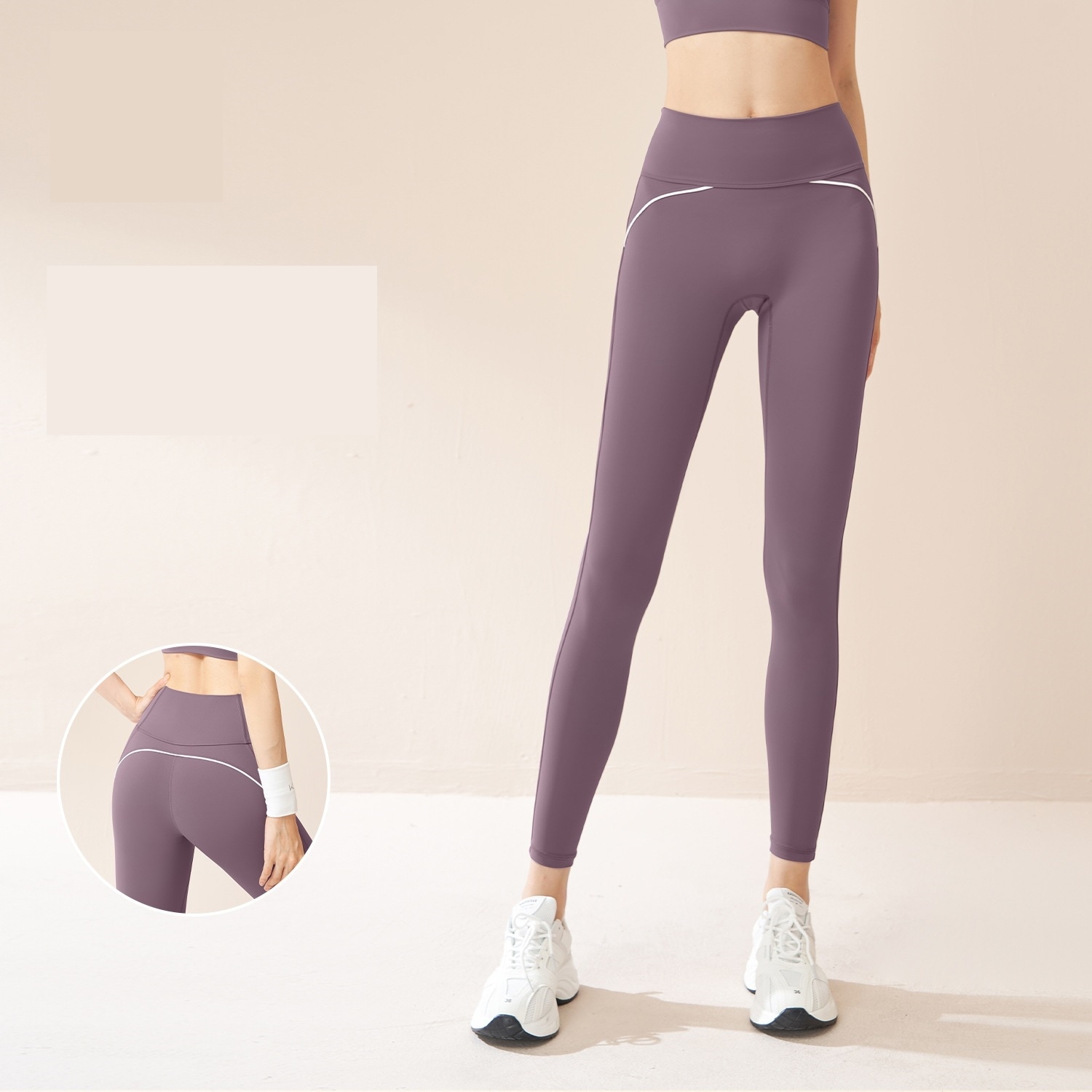 おしゃれヨガウェア ストライプ ハイウエストヨガパンツ スキニーフィットネスパンツ フィットネス ヨガパンツ