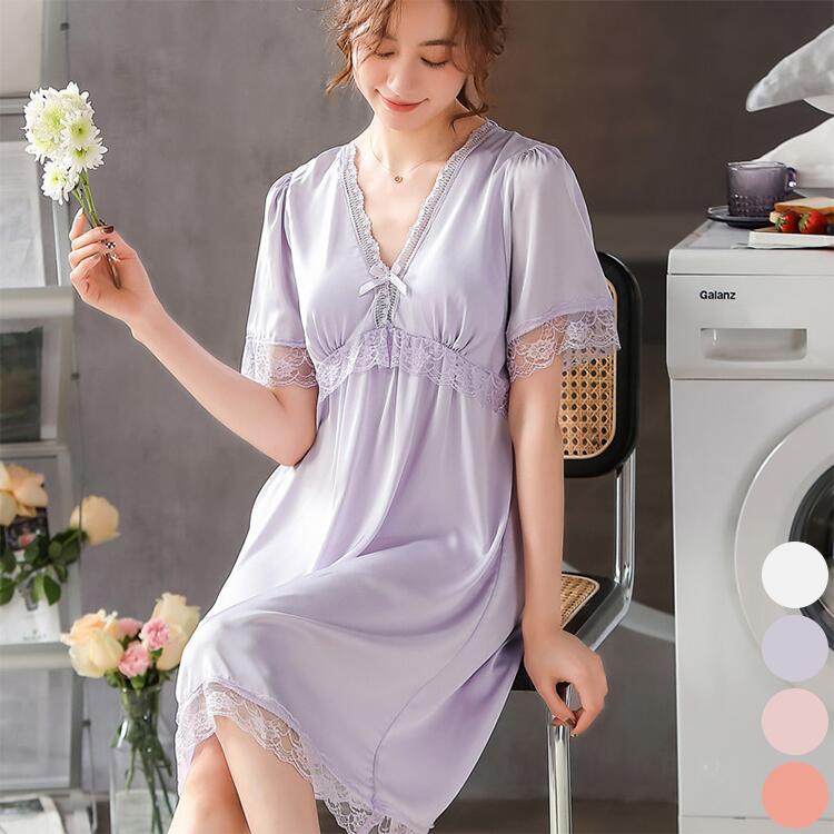 ルームワンピース 刺繍レース 女性用 レディース パジャマ レディース ルームウェア 4色 スリップ ランジェリー ナイトウェア 部屋着 インナーウエア ベビードール ネグリジェー マタニティー 母の