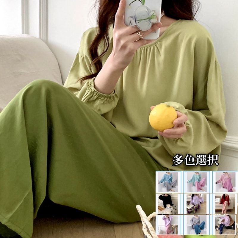 2025春新登場 高級感 日系 パジャマ レディース 無地 柔らかい快適 長袖 ルームウェア 春秋 通気性 大きいサイズ パジャマ セットアップ 韓国ファッション ゆったり部屋着 上下セット
