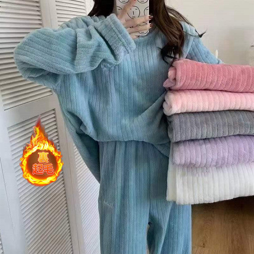 パジャマ 冬ルームウェア 冬のベアーとベルベットのパジャマ冬の女性秋冬の新しいかわいいベルベットの厚い家庭服セット パジャマ