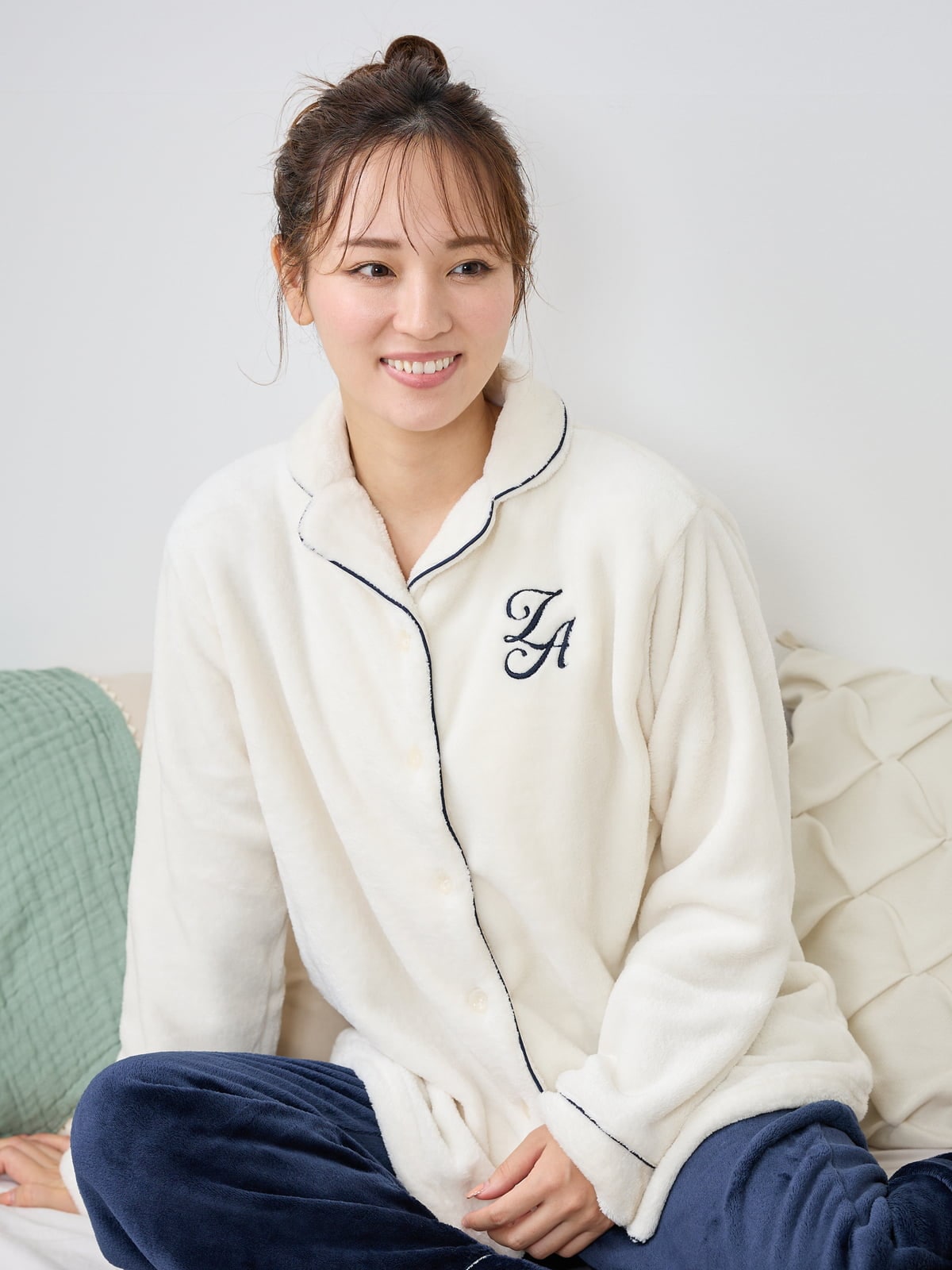 チュチュアンナ [まるで毛布 のような暖かさ]ロゴ刺繍前開きマイクロファイバーパジャマ レディース ルームウェア パジャマ 上下セット 長袖 ロングパンツ