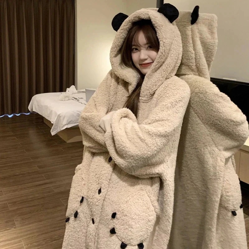 着ぐるみパジャマ ins甘くてかわいいヒグマのパジャマ女性保温冬の新型加絨加厚サンゴ絨毯の部屋着 パジャマ