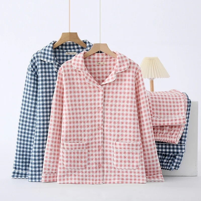秋冬 ニュースタイル 厚手 日系 チェック パジャマ ホームウェア カップル シンプル 純綿 パジャマ パジャマ