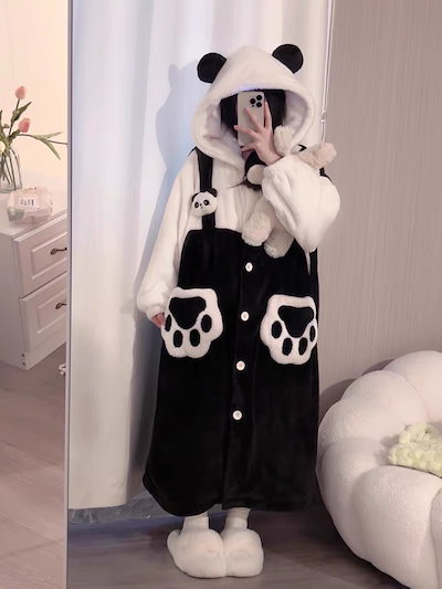 着ぐるみパジャマ かわいいパンダの保温パジャマ女性サンゴの絨毯冬の加絨毯加厚フランネル冬の部屋着 パジャマ
