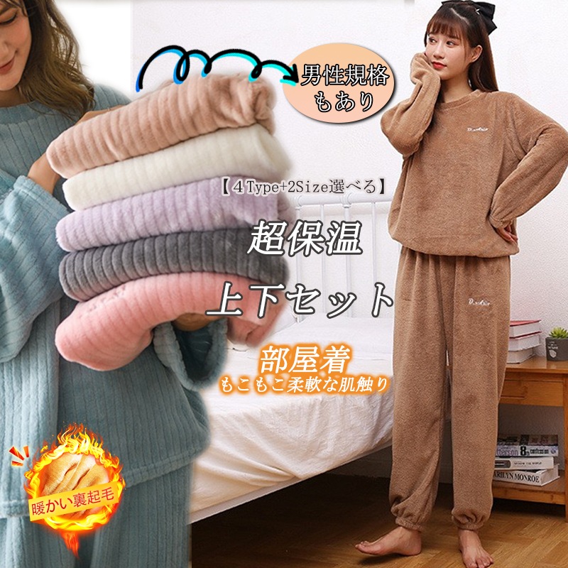 男女兼用 ルームウェア モコモコパジャマ パジャマペア フランネル 保温 部屋着 快適 上下セット カップルお揃い 家族お揃い