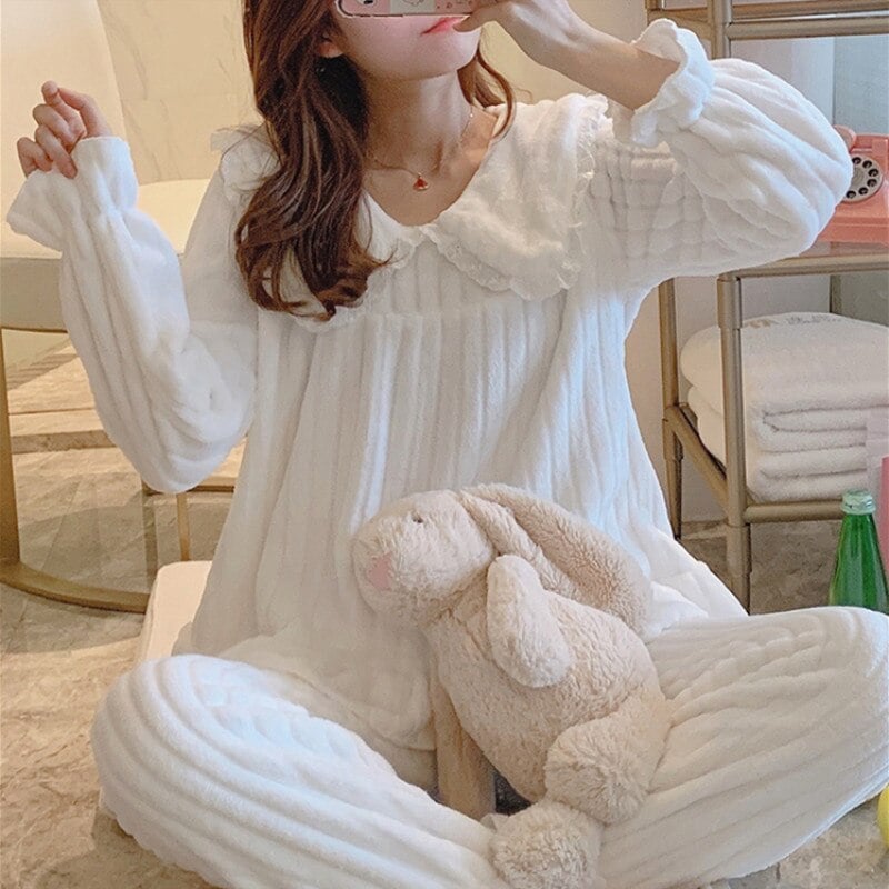 3colors 秋冬 長袖 日系 可愛い カジュアル ルームウェア 気質 レディース ルームウェアゴールドベルベット保温パジャマ パジャマ