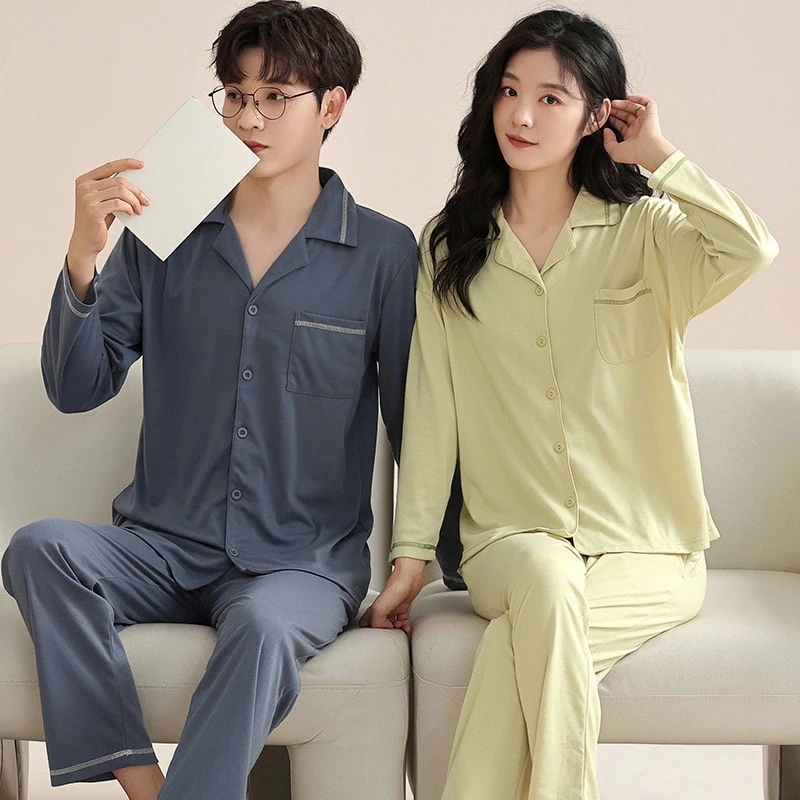パジャマ レディース メンズ ルームウェア 長袖 上下セット 無地 綿 かわいい 薄手 快適 柔ら パジャマ