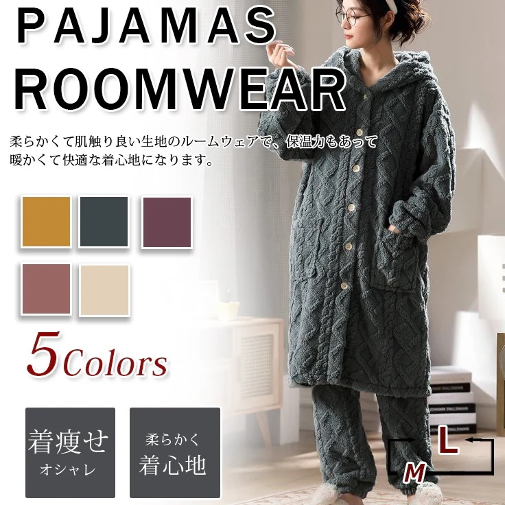 秋 冬 新作 コーラルフリース 裏起毛 厚手 パジャマ 快適性 ルームウェア パジャマ