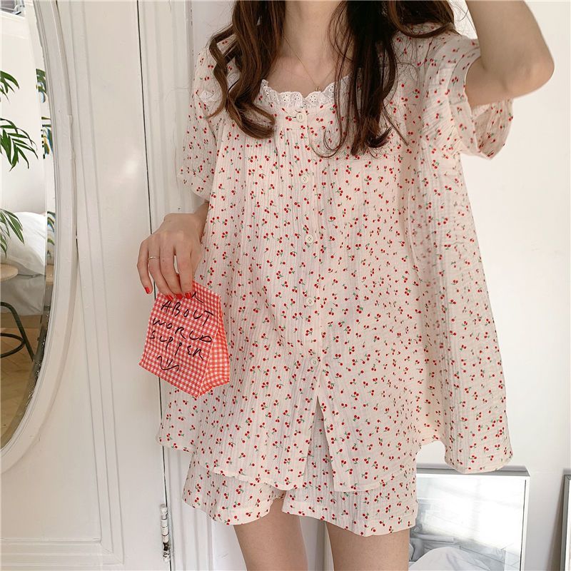 半袖 ネグリジェ 部屋着 可愛い レディース 甘いです 夏服 ルームウェア 韓国ファッション ゆったり快適 花柄パジャマ 日系 パジャマ