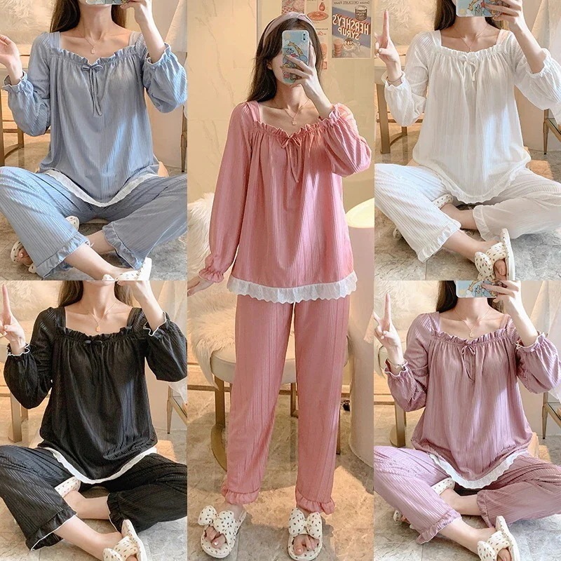 あったかルームウェア 韓国ファッション2点セットパジャマパジャマ レディース ルームウェアパジャマ部屋着 セットアップレディースパジャマレースルームウェア セットアップ