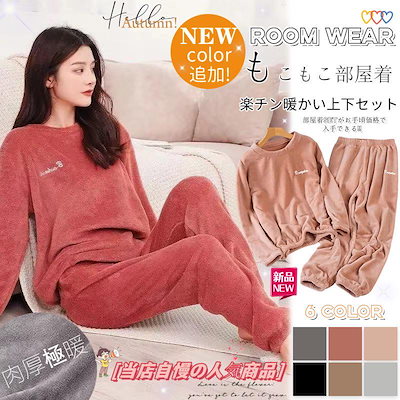 2点セット パジャマ レディース 秋冬 裏起毛 ルームウェア 上下セット 長袖 パジャマ 韓国ファッション もこもこパジャマ かわいい 裏起毛 柔らかい